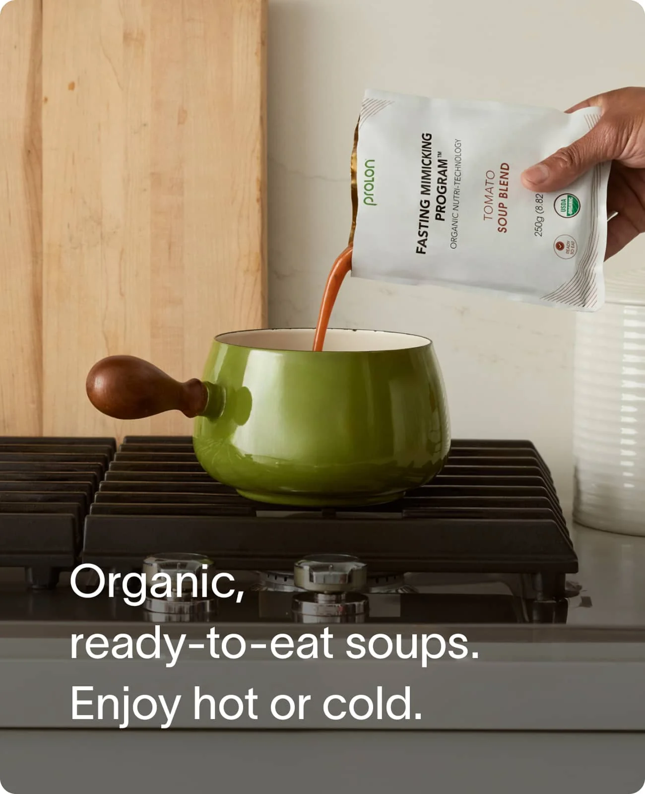 The Prolon Next Gen 5-Day FMD—delivering the same science-backed benefits as our original, but in an even more convenient, and flavor-packed format. The Next Gen FMD contains certified organic soups and teas. The soups are ready to eat, so you just pour from the pack and eat—hot or cold! Carefully selected organic vegetables and expert preparation create vibrant, delicious meals that are both satisfying and nutrient-dense.